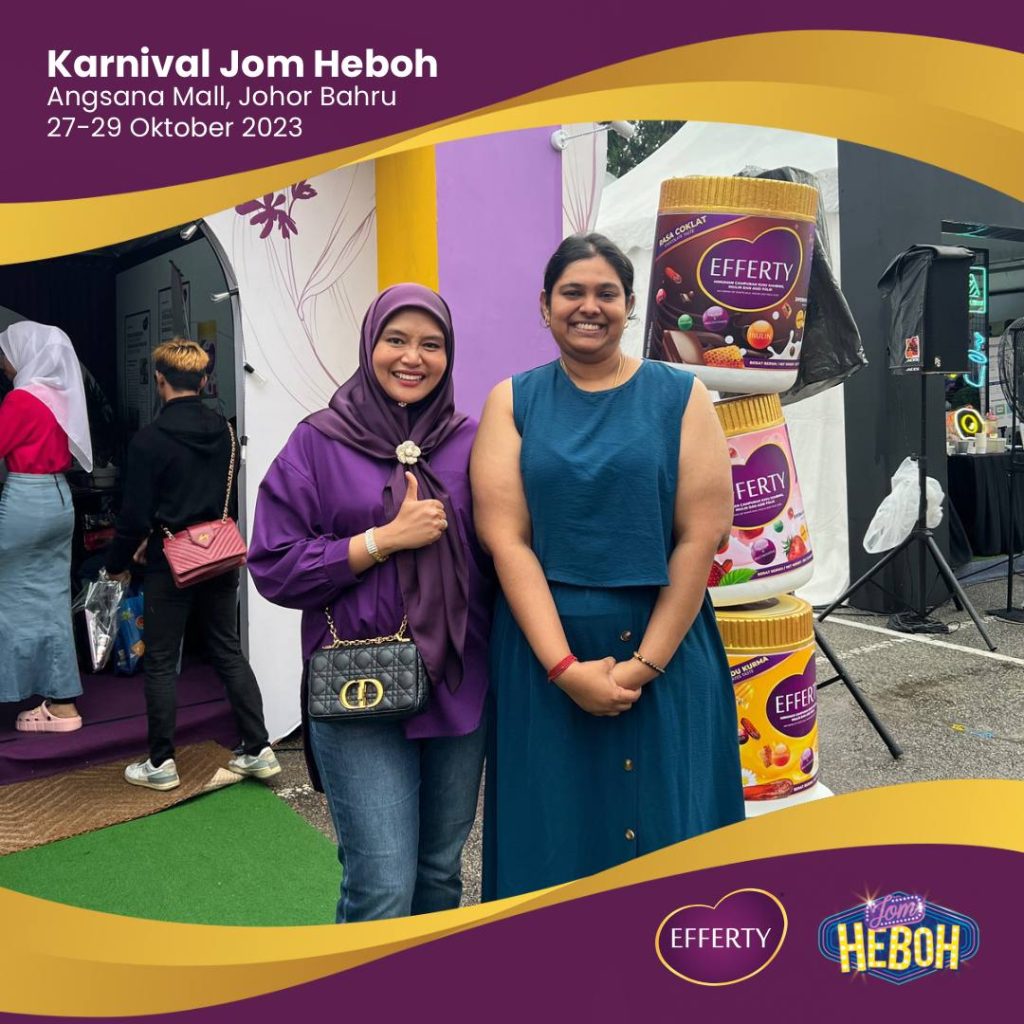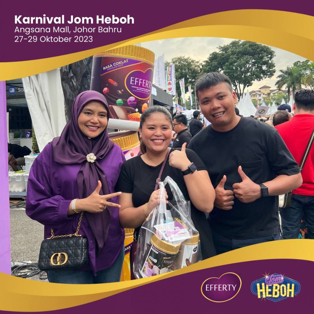 Alhamdulillah, tiga hari di Karnival Jom Heboh di Angsana Johor Bahru Mall berlangsung dengan lancar dan penuh kegembiraan. Ini adalah pengalaman yang luar biasa dan saya ingin mengucapkan terima kasih kepada semua yang telah datang untuk menyokong Booth Efferty selama tiga hari ini.