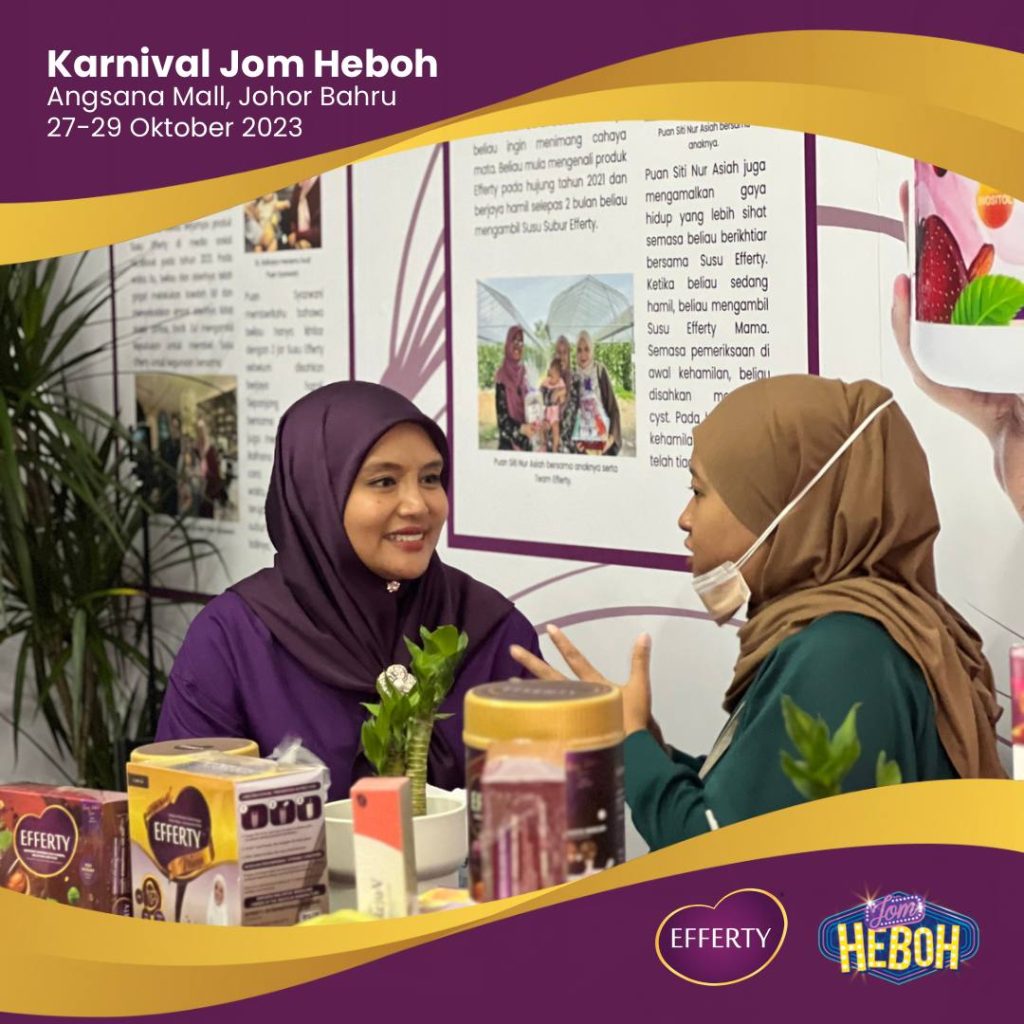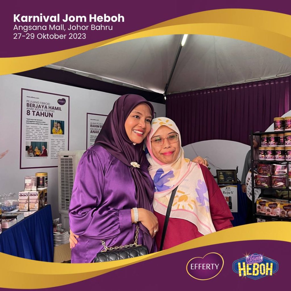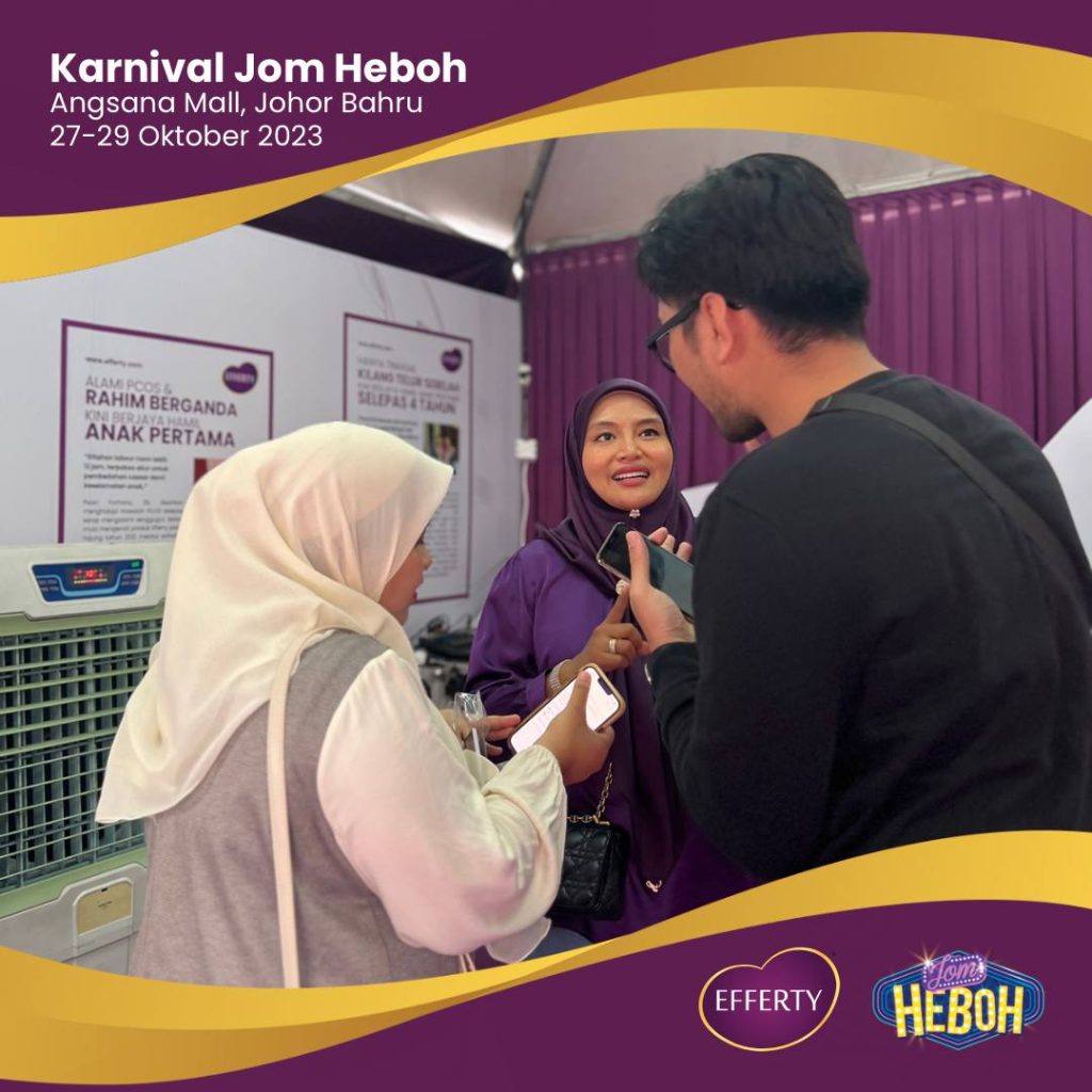 Karnival ini memperlihatkan sokongan yang luar biasa daripada para pengunjung. Ramai yang datang dan ingin berfoto bersama saya kerana mereka telah berjaya hamil dengan bantuan produk Efferty. Ini adalah satu pengalaman yang mendalam dan memotivasikan kami untuk terus berusaha membantu lebih banyak individu mencapai impian mereka untuk memiliki keluarga yang bahagia.